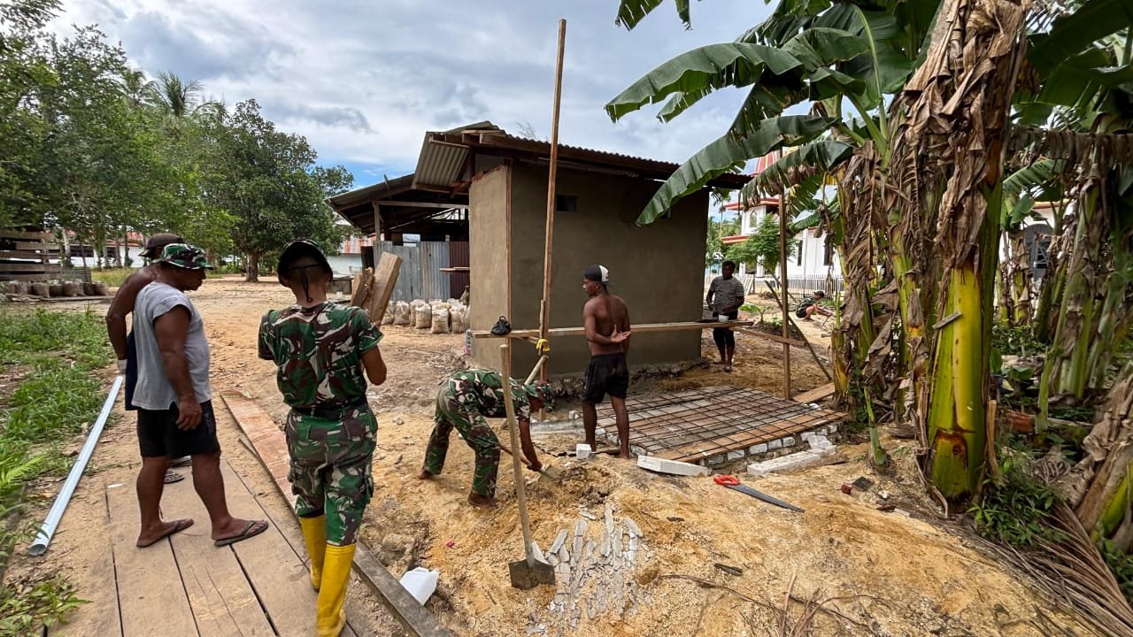 Kaimana – Program TNI Manunggal Membangun Desa (TMMD) ke-127 yang dilaksanakan oleh Kodim 1804/Kaimana terus menunjukkan progres signifikan di wilayah Kampung Sisir, Distrik Kaimana, Kabupaten Kaimana. Memasuki hari pelaksanaan pada 25 Februari 2026, Satgas TMMD berhasil mencapai 62 persen progres pembangunan satu unit MCK yang berlokasi di samping Gereja Oraid Labora.