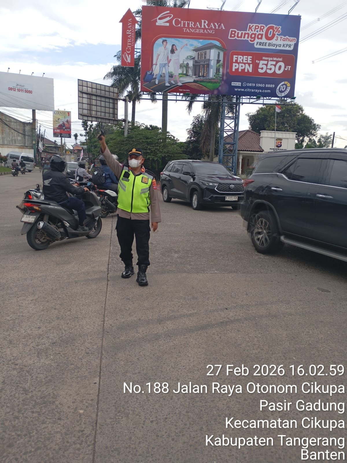 Tangerang — Personel Polsek Cikupa melaksanakan kegiatan Pergelaran Cepat (PECAK) pengaturan arus lalu lintas sore hari pada Jumat, 27 Februari 2026 pukul 16.00 WIB hingga selesai di Perempatan Lampu Merah Cikupa Mas, wilayah hukum Polsek Cikupa.