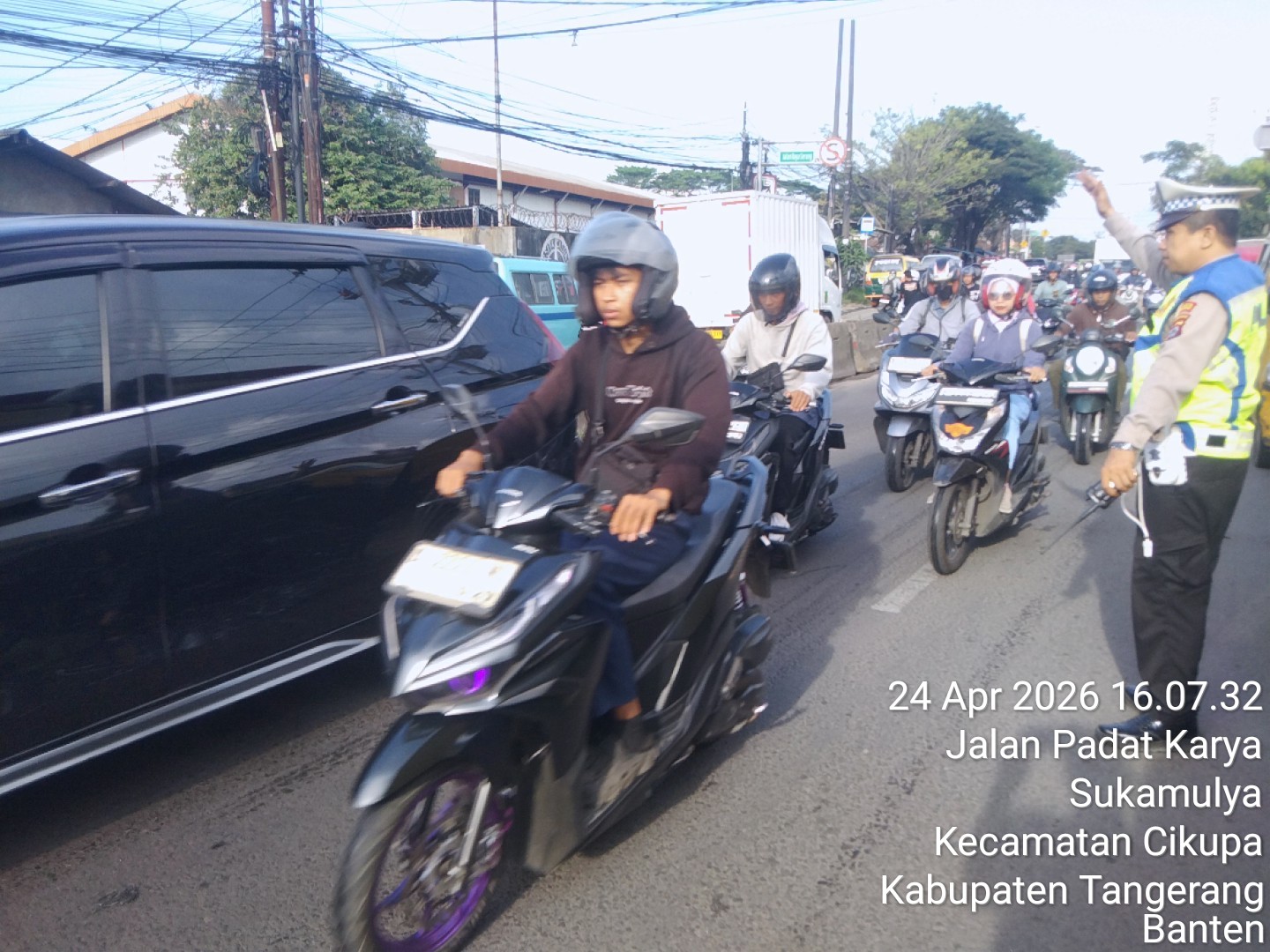 Tangerang – Dalam rangka menjaga kelancaran arus lalu lintas serta memberikan rasa aman kepada pengguna jalan, personel Lalu Lintas Polsek Cikupa Polresta Tangerang melaksanakan kegiatan Pergelaran Cepat (PECAK) pada sore hari, Jumat (24 April 2026).
