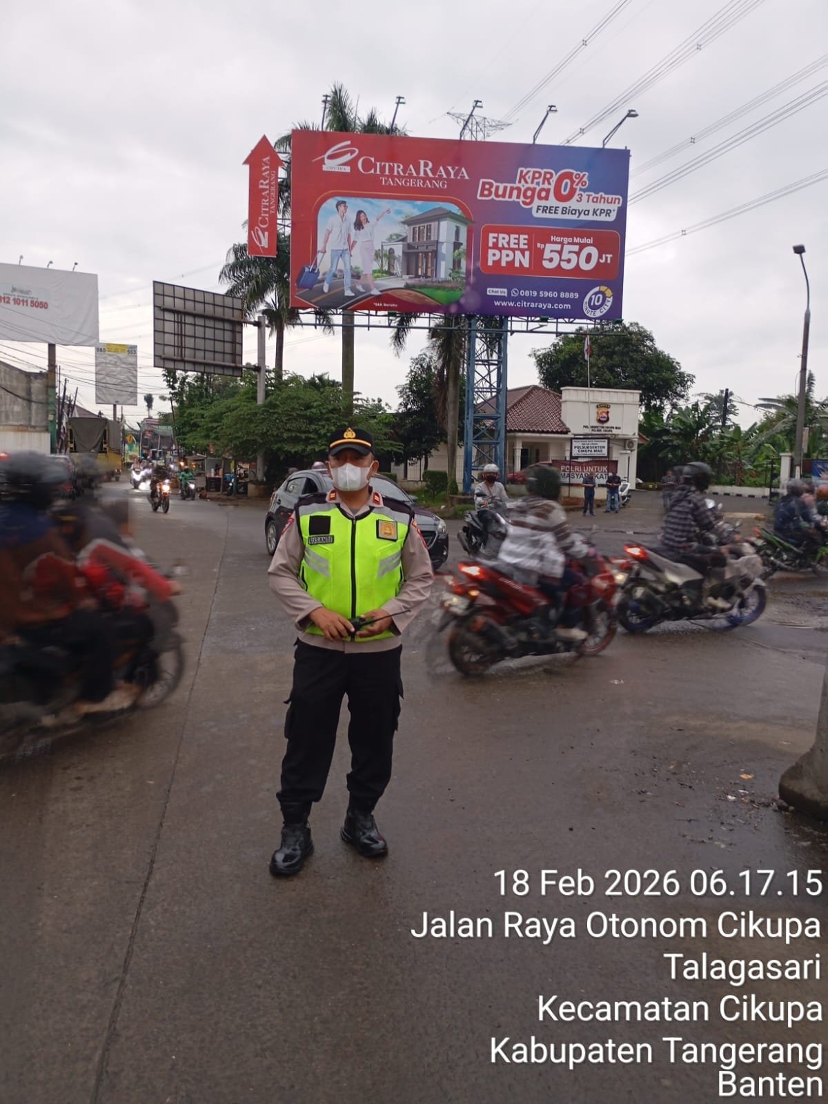 Cikupa, Tangerang — Personel Polsek Cikupa melaksanakan kegiatan pengaturan arus lalu lintas pagi pada Rabu (18/2/2026) pukul 06.00 WIB hingga selesai di Perempatan Lampu Merah Cikupamas, wilayah hukum Polsek Cikupa.