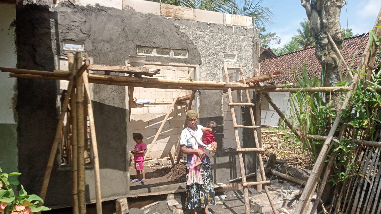 Di lapangan, pengerjaan rumah dilakukan secara bertahap mulai dari perbaikan struktur hingga penyempurnaan bagian dalam rumah. Warga sekitar turut ambil bagian membantu proses pembangunan sebagai bentuk solidaritas sosial.