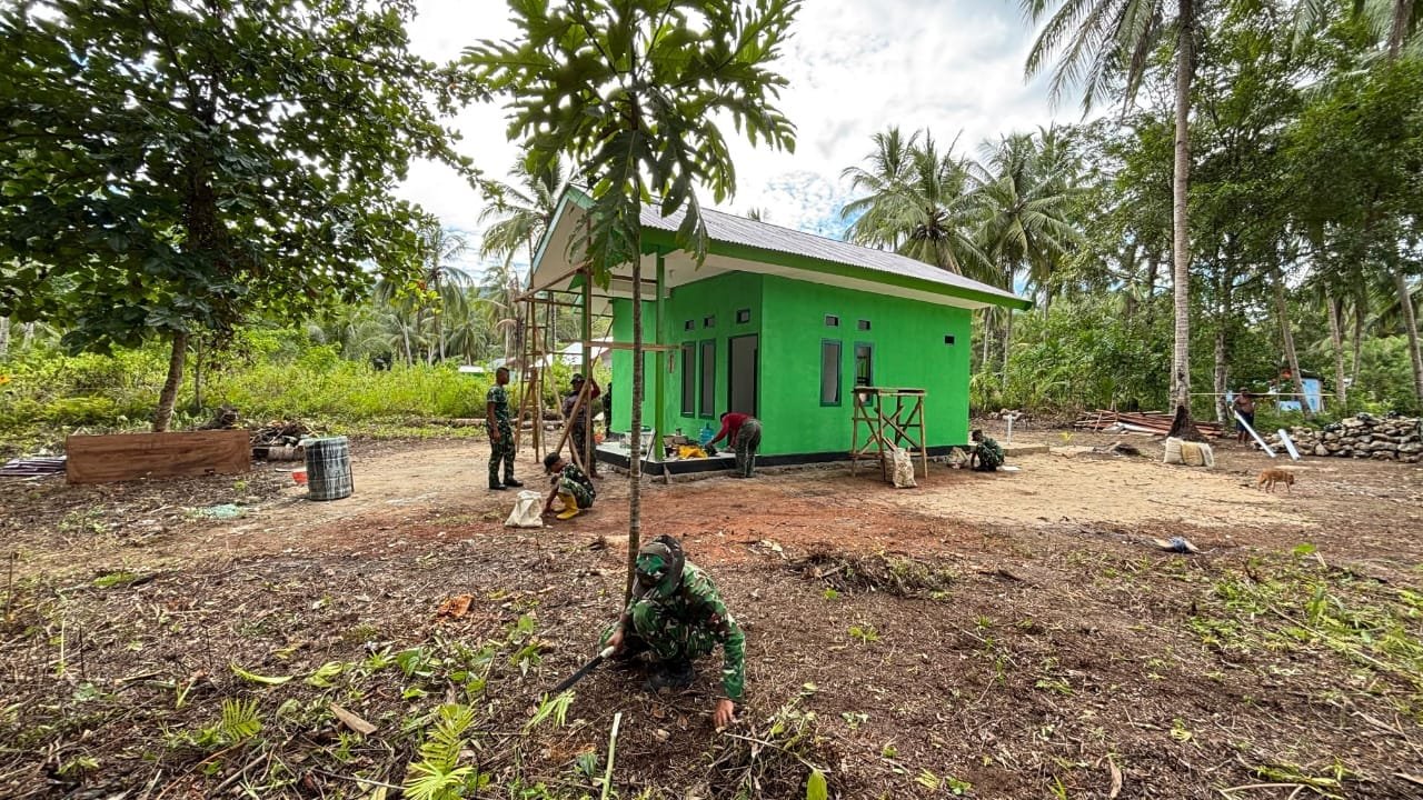 Menurut keterangan di lokasi, tahapan finishing menjadi salah satu fase penting karena menentukan kualitas akhir bangunan. Selain memperhatikan struktur, personel juga fokus pada kebersihan dan kerapian lingkungan sekitar rumah agar hunian tersebut benar-benar layak dan sehat.