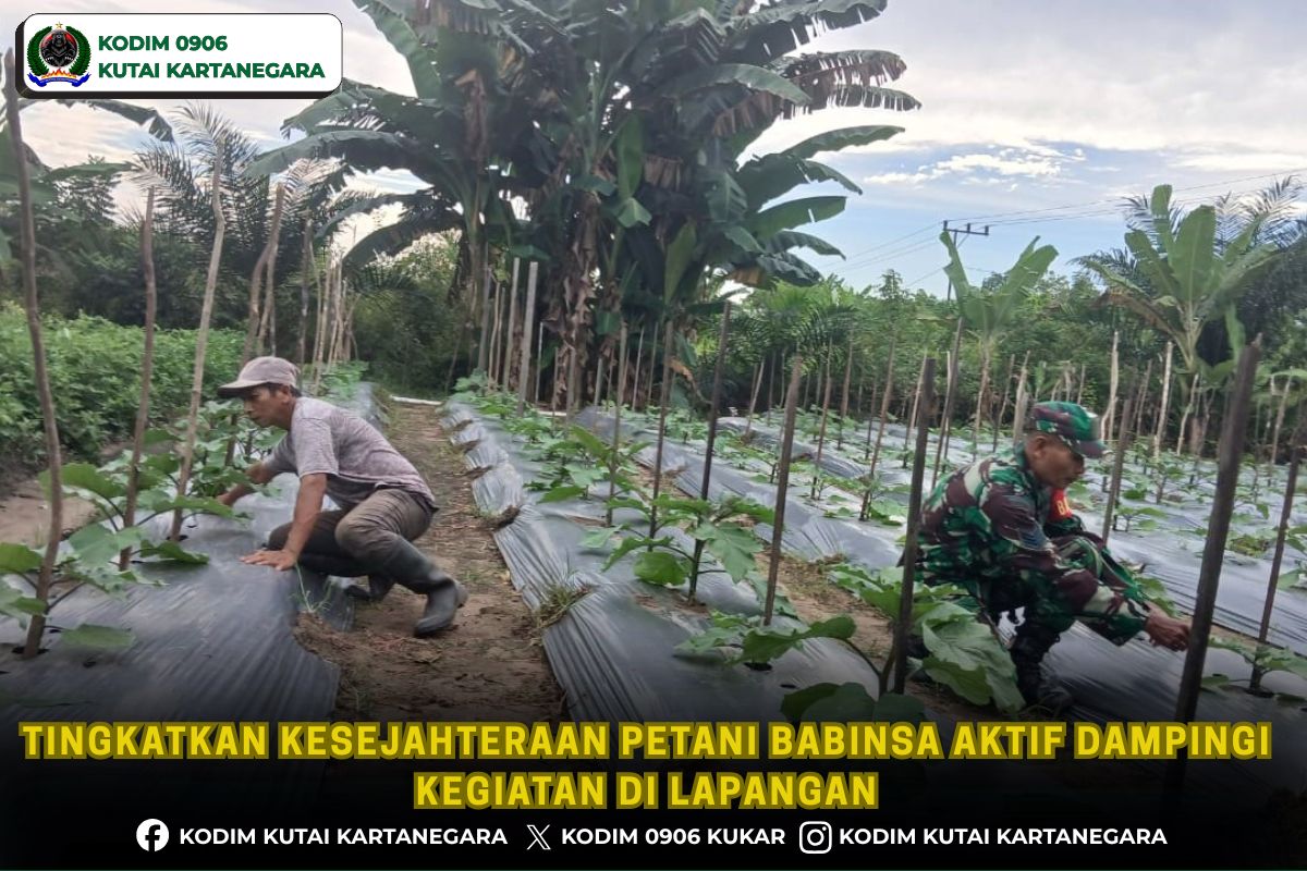 Kutai Kartanegara. radarnkri.id- Dalam mendukung meningkatkan kesejahteraan petani yang ada di wilayah binaan, anggota Babinsa Koramil 0906-08/Muara Kaman Serma Makbul melakukan pendampingan kepada petani terong yang berada di wilayah binaan tepatnya rt 08 Desa Muara Kaman Ulu Kecamatan Muara Kaman, Senin 20/4/26.