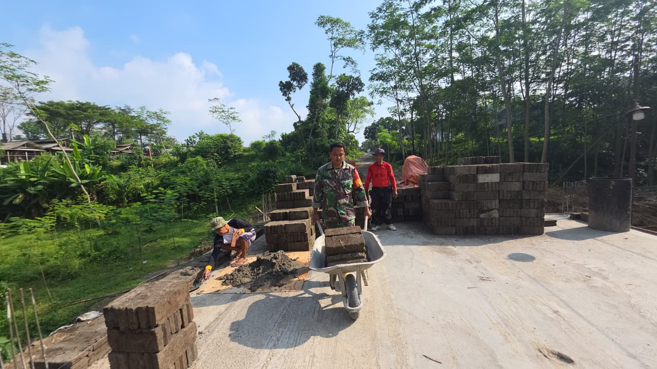 Blitar – Wujud nyata kemanunggalan TNI bersama warga setempat dalam mendukung pembangunan infrastruktur desa. Babinsa Desa Kebonduren Koramil 0808/07 Ponggok Sertu Tri Rosadi melaksanakan kegiatan kerja bakti pemasangan dinding pembatas Jembatan Perintis Garuda di Kali Complang Desa Kebonduren Kecamatan Ponggok, Selasa (28/4/2026).